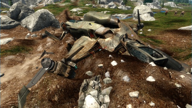 For this level in Halo: Fireteam Raven, I took the Falcon model provided by Microsoft, dirtied it up, and wrecked it to fit the crash scene. While I didn’t create the stunning background, my focus was on transforming the vehicle into a believable crash site with added texture and damage effects.